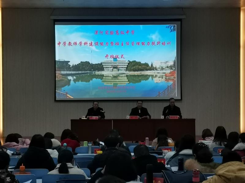 12月7日上午,漯河市实验高级中学教师学科建设能力暨班主任管理能力提升培训开班仪式在我院举行。漯河市实验高级中学党委书记、校长游建德,我院党总支书记周涛,副院长邓觅成和90名参训教师参加了开班仪式。仪式由邓觅成主持。
