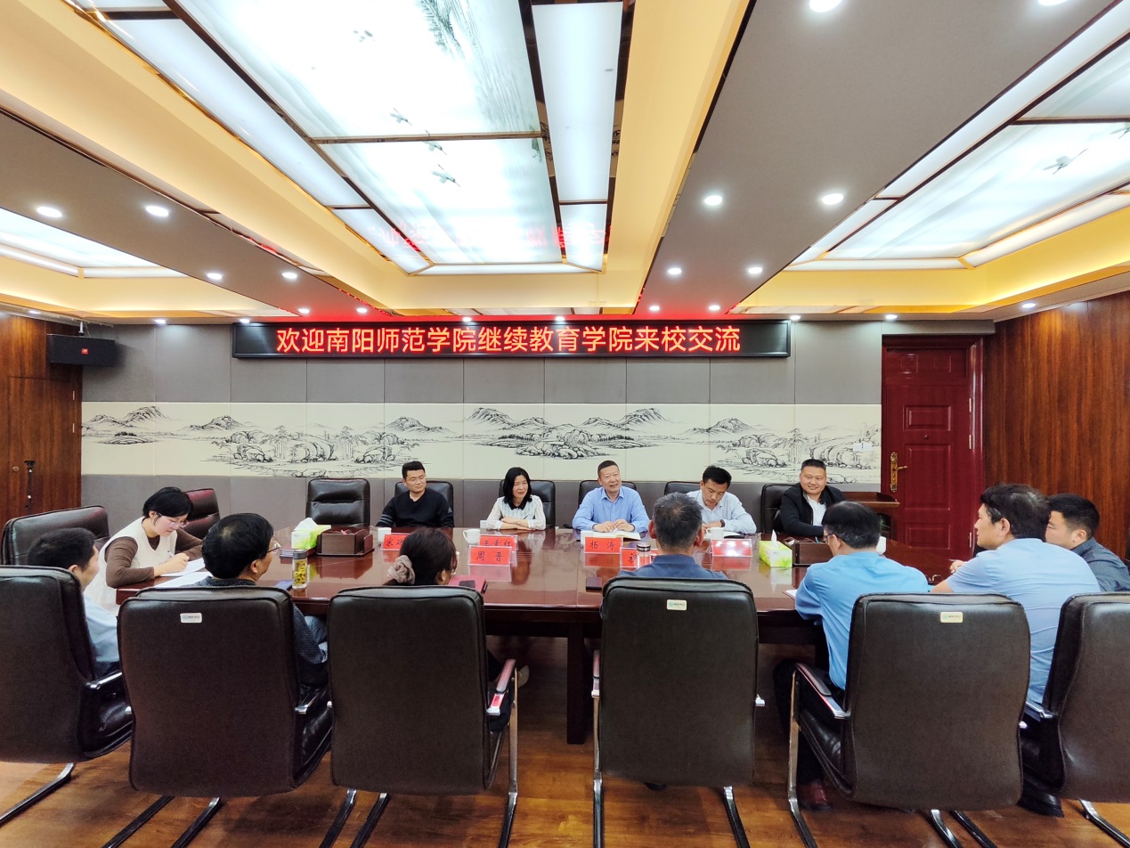 祝军对南阳师院学院同行的到来表示热烈欢迎,介绍了新葡萄官网继续教育办学历史、发展现状。杨涛对我院的热情接待表示感谢,高度评价新葡萄官网2023年高等学历继续教育教学评估工作。双方就高等学历继续教育、校外教学点管理、非学历继续教育工作等进行了深入交流。