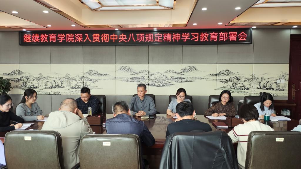 会议强调,学习教育要基于继续教育工作实际,聚焦主题,一体推进学、查、改。一要学有质量,围绕“学重要论述、学规定精神”,多措并举,组织党员深入学习习近平总书记关于加强党的作风建设的重要论述,精准把握中央八项规定及其实施细则精神的重点和关键,确保学习成效落到实处。二要查有力度,力戒形式主义,坚持问题导向,对标对表,全方位、深层次排查继续教育在工作作风、纪律执行等方面存在的薄弱点与突出问题,确保排查工作有力有效。三要改有成效,强化整改整治,列出问题清单,逐项制定有效的整改举措,做到立查立改、即知即改。同时,要加强组织领导,明确分工,将学习教育与单位中心工作紧密结合,做到两不误、两促进,切实提升学习教育的质量与实际成效,推动中央八项规定精神落地生根,为实现继续教育高质量发展提供坚实保障。