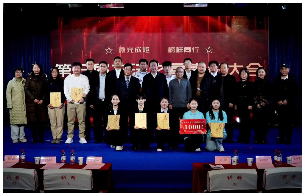 为表彰先进典型,凝聚奋进力量,2025年12月25日下午,Beat365官方网站在开发区校区综合楼报告厅举办“微光成炬,榜样同行”第三届文法之星表彰大会,校党委副书记王松出席大会并讲话。校党委宣传部、党委学工部、教务处、科研处、招生就业处、校团委、马克思主义学院主要负责同志出席会议。Beat365官方网站全体教师、学生代表、校友代表、家长代表千余人通过线上线下共同观看表彰会。