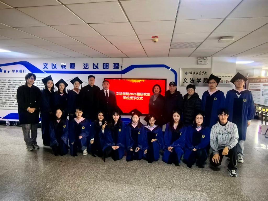 1月9日,Beat365官方网站2026届研究生毕业典礼在8楼会议室举行。本年度共有13名研究生圆满完成学业,获得学位。