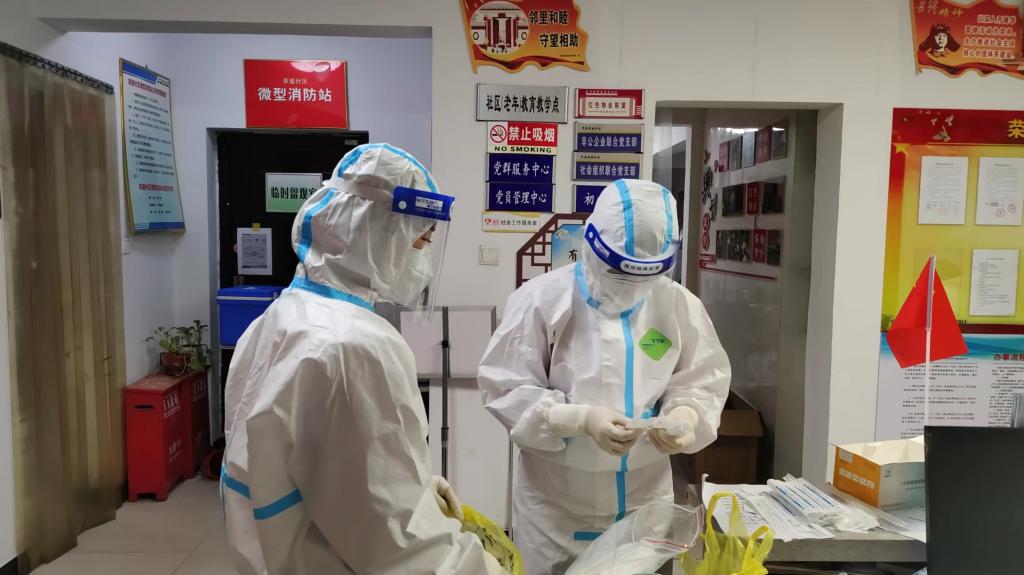 因疫情防控需要尚未返校的学生党员也积极响应学院党委号召,在家乡争当志愿者,投身于疫情防控工作。目前我院已有10名学生党员参加了社区的疫情防控服务工作,积极协助社区工作人员进行入户排查、流调登记、站岗服务,引导居民有序进行核酸检测,用一抹抹鲜亮的“志愿红”筑起了疫情防控的“铜墙铁壁”。