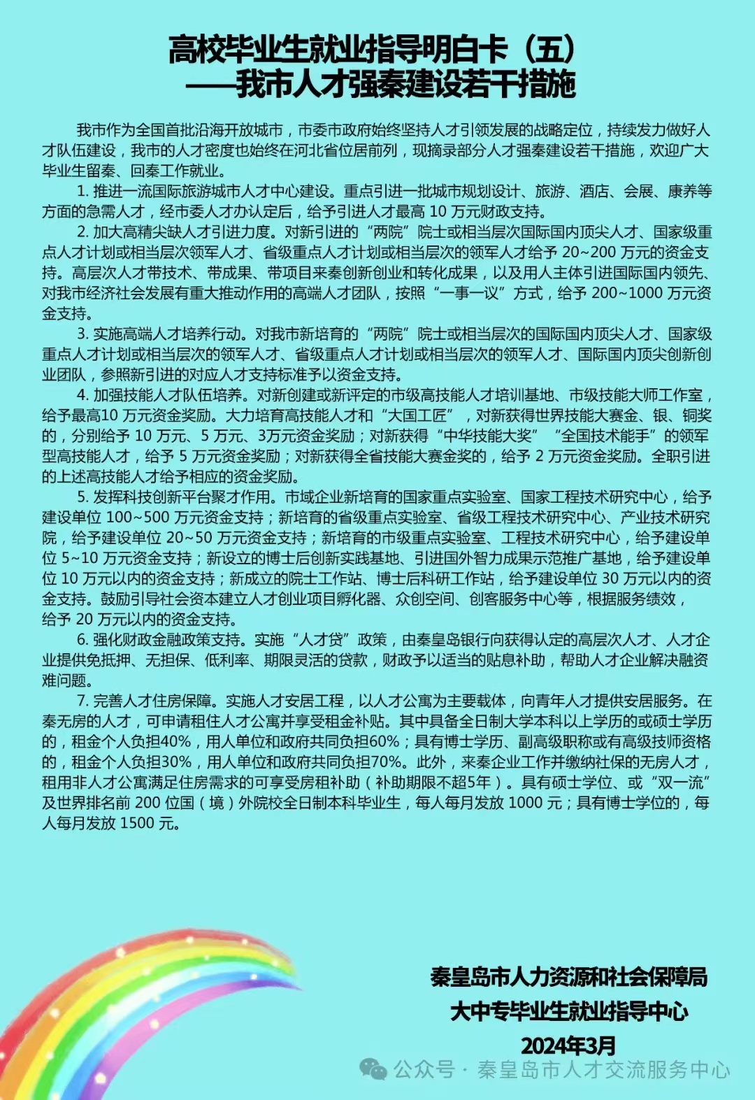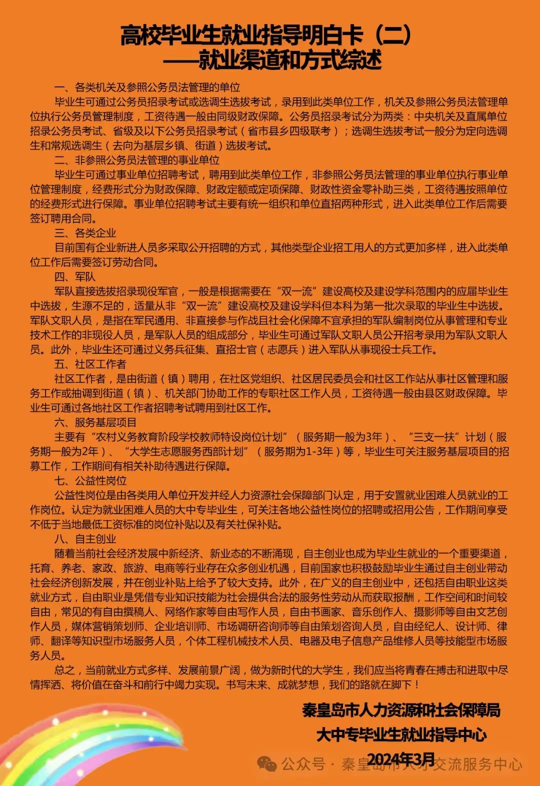 秦皇岛市人社局毕业生就业指导中心更新发布第二期共6版高校毕业生就业指导明白卡,希望用这道就业指导彩虹为更多的毕业生指引前行的方向。