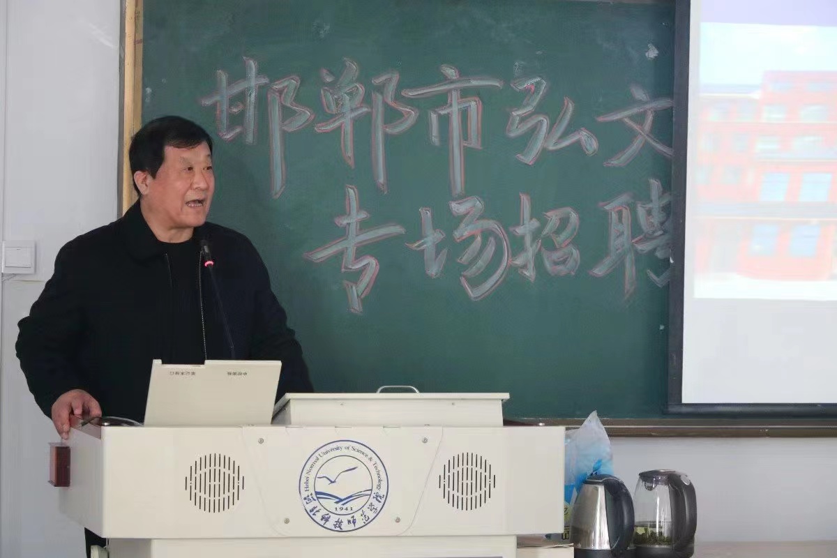 邯郸市弘文中学刘校长介绍了邯郸市弘文中学的建校史,弘文中学校园建设达到省级一流的标准,校园管理规范,人文气息浓厚,办学成绩优异,注重教师专业发展培养,刘校长还介绍了弘文中学教师岗位的薪资与待遇。本次招聘会吸引了众多学生参与,同学们纷纷投出了简历并进行了精彩的试讲。
