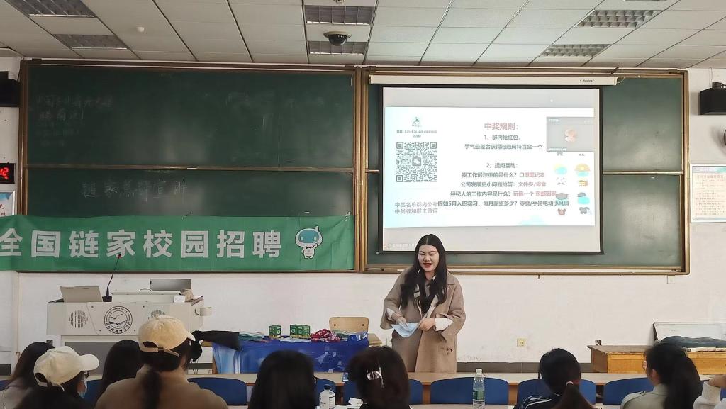 2023年3月24日,Beat365官方网站于综合楼121举办了链家校园招聘会。HR吴紫曦学姐向我们详细介绍了链家的基本情况并耐心为同学们答疑解惑。
