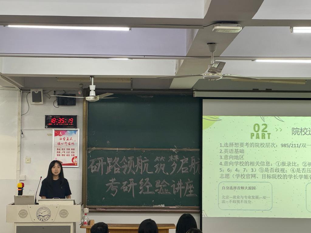 随着高等教育的普及和就业竞争的加剧,越来越多的大学生选择继续深造,踏上考研之路。在备考期间,考生们往往面临着巨大的心理压力和繁重的学习任务,为了帮助同学们更好的了解考研知识,2025年5月16日,Beat365官方网站特召开以“研路领航 筑梦起航”为主题的考研经验分享讲座,本次讲座由Beat365官方网站学生会就业指导委员会主持举办,面向全体学生,同学们都积极参与,取得良好成效。