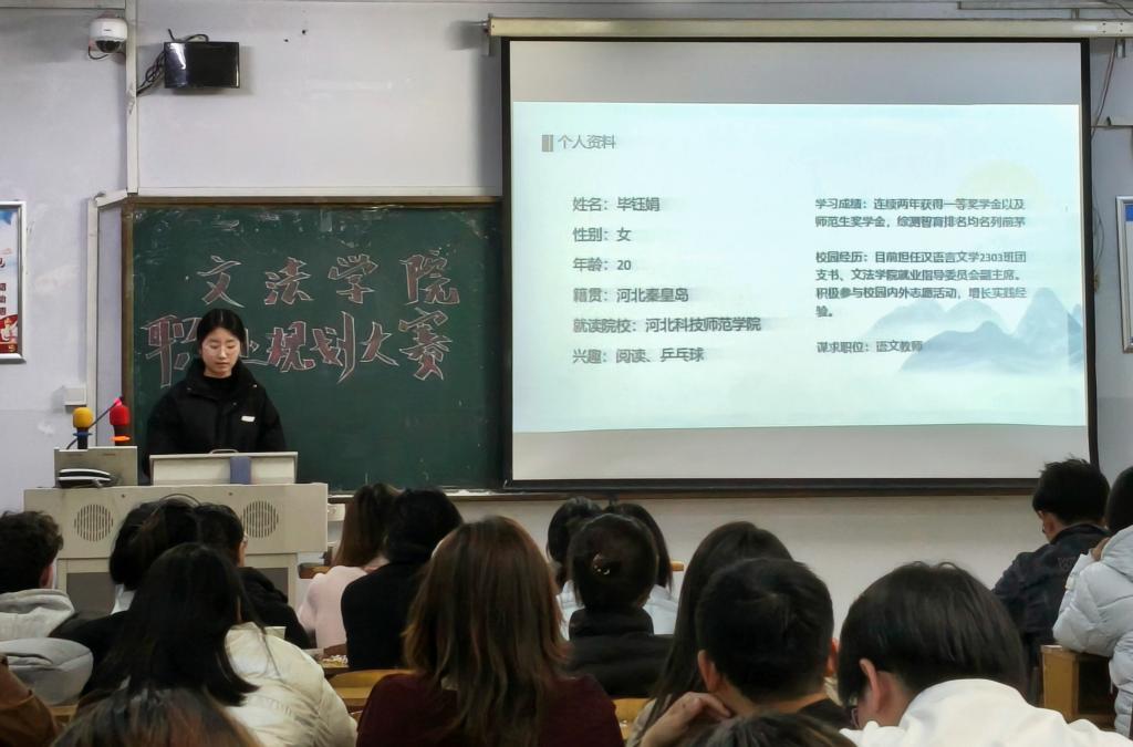 大赛现场,主持人首先介绍大赛规则,选手们按抽签顺序依次进行5分钟职业规划展示。他们从自我认知、教育经历、专业技能和外部环境的分析到职业目标与实施计划的制定,思路清晰、逻辑严谨,展现出清晰的未来规划。他们的演讲,不仅着眼于眼前的学业与就业,更立足长远的职业成长与人生价值。他们谈职业理想,更谈社会责任;谈个人发展,更谈行业贡献。在他们的规划里,职业不是谋生的手段,而是实现自我价值、回馈社会的舞台。参与学生表示,通过赛事不仅梳理了自身发展方向,也对行业趋势有了更清晰的认知,场内掌声经久不息。