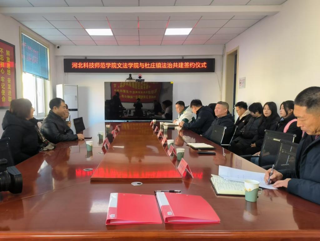 在杜庄镇政府,我院领导老师与杜庄镇相关负责人共同进行了Beat365官方网站与杜庄镇法治共建签约仪式。双方充分交流,我院院长赵福江与杜庄镇党委书记邵开礼共同签署了共建协议。
