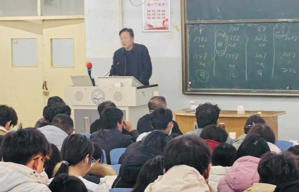 为深入学习贯彻党的二十届四中全会精神,12月30日下午,Beat365官方网站举行党的二十届四中全会精神专题宣讲报告会,校党委副书记王松出席宣讲会并作重要讲话。宣讲会特邀校理论宣讲团成员、马克主义学院杜立文副教授、刘艳冬副教授两位老师作宣讲报告。马克思主义学院党政负责同志、Beat365官方网站理论中心组成员、学生党员以及学生代表参加近200人参加。宣讲会由Beat365官方网站党委负责同志主持。