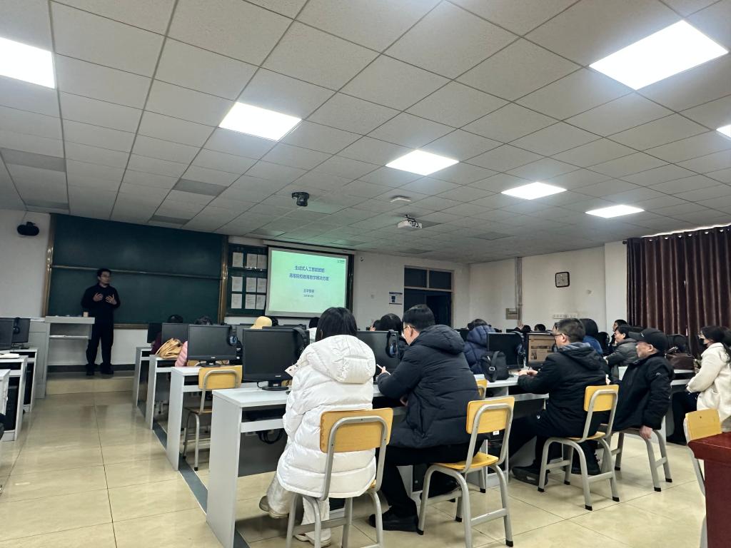 培训会上,杨屾以《生成式人工智能赋能赋能高等院校教育教学解决方案》为题,结合Beat365官方网站专业特色,开展了“理论解读—案例剖析—实操演练—互动答疑”的系统培训。在理论环节,专家系统解读了智慧课程的内涵特征与建设规范,深入剖析了《教育强国建设规划纲要(2024—2035年)》中关于教育数字化的核心要求,明确了文科智慧课程“价值引领、知识建构、能力培养”的三位一体建设目标。以“四助”(助教、助学、助研、助管)为切入点,阐释了人工智能与高等教育的融合趋势,并引出玄华智能的产品架构,展现了生成式AI与教育教学的融合实践。